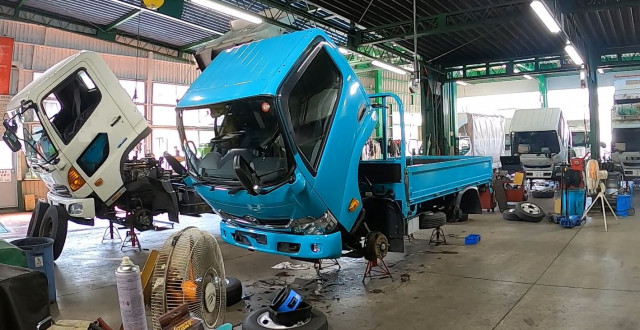バン・トラックを中心に 年間2,500台以上の車検・整備を行っております。 安心して整備もお任せ頂けます! 鈑金・塗装などもお気軽にお問合せ下さい!