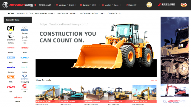 【重建機サイト】 https://www.autocraftmachinery.com/ -