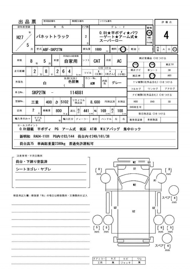 荷台・下廻り塗装済 シートヨゴレ・ヤブレ