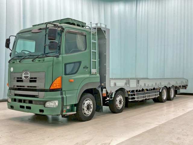 美川ボテー 4軸アルミブロック平ボディ スタンションホール「中央2対 リア1個」 引出しフック「22対」 丸フック「10対」 シートデッキ 前壁縞板/物入 フロントメッキ アルミホイール SAT(シフトパイロット) 総輪エアサス 🔶中古新規登録時「減トンの可能性」有ります。🔶🔶フロントガラス「飛び石」有ります。🔶