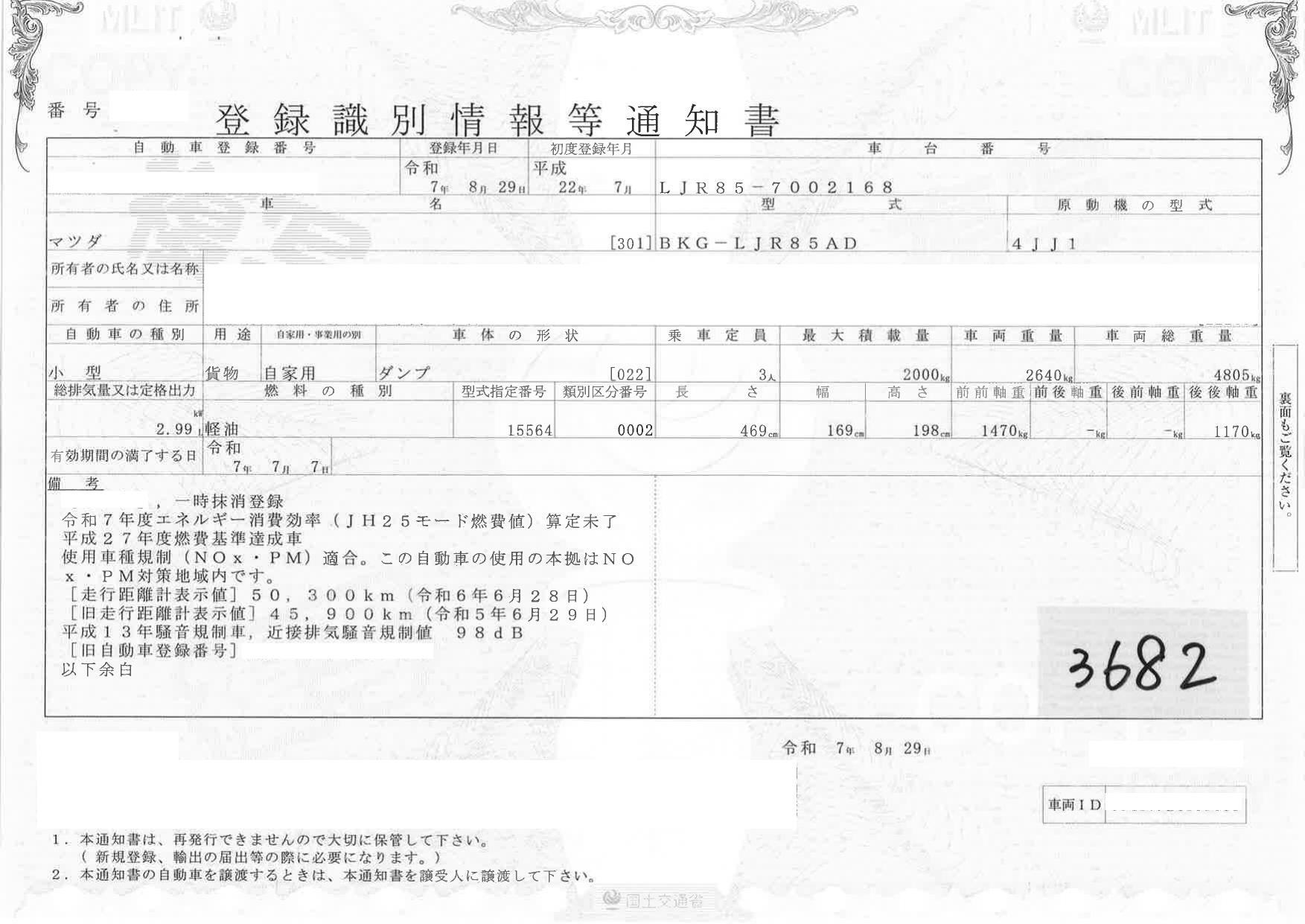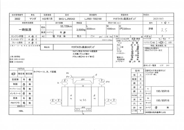 マツダタイタン 2t高床ダンプ 新明和製 三方開 4ナンバー 150馬力 ドラレコ付