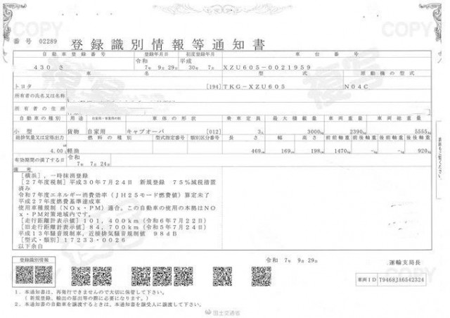 荷台内寸469×169×198 車両外寸310×160×38 車両総重量7.5t未満 準中型免許 4ナンバー エンジン型式N04C 4000cc 保証付 小型 トラック