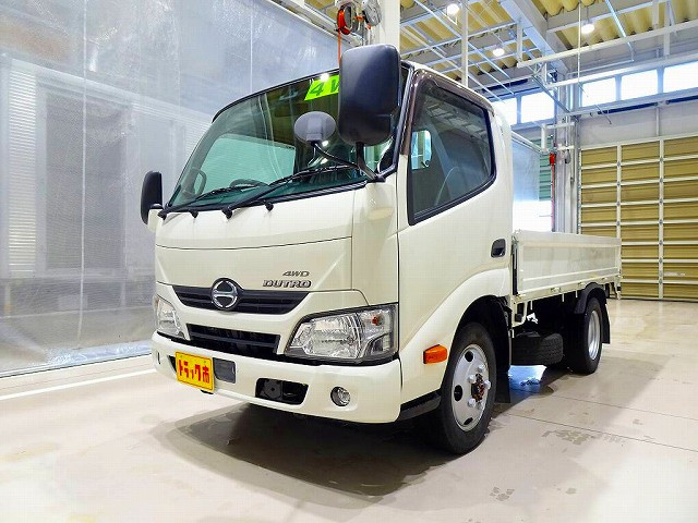 2トン積み、ロングボディー、低床、D-Turbo、ライトレベライザー、アイドリングストップ、排出ガス浄化装置、3方開、ねずみ穴、荷台床鉄板張り、荷台内寸4350x1790