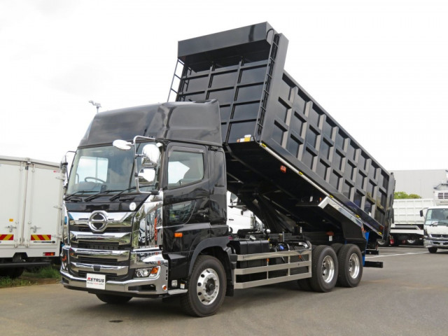 日野・未使用・25t・ハイルーフキャブの土砂禁ダンプが入庫いたしました。 ボディは極東製で内寸L=9.00m W=2.30m H=1.65mで34.1立米、積載は10,900kg、リアゲートは片開き式です。 キャブメッキ多数使用の他、アルミホイール装着と見た目にも拘った1台です! 是非お問い合わせ下さい。