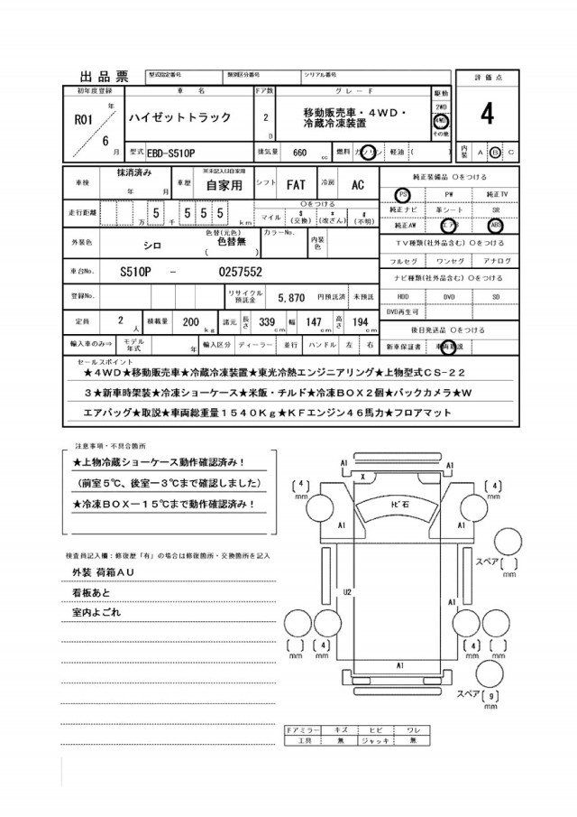 ★4WD★移動販売車★冷蔵冷凍装置★東光冷熱エンジニアリング★上物型式CS-223★新車時架装★冷凍ショーケース★米飯・チルド★冷凍BOX★バックカメラ★Wエアバッグ★取説★車両総重量1540Kg★KFエンジン46馬力★フロアマット★上物冷蔵ショーケース動作確認済み!(全室5℃、後室ー3℃まで確認しました)★冷凍BOXー15℃まで動作確認済み
