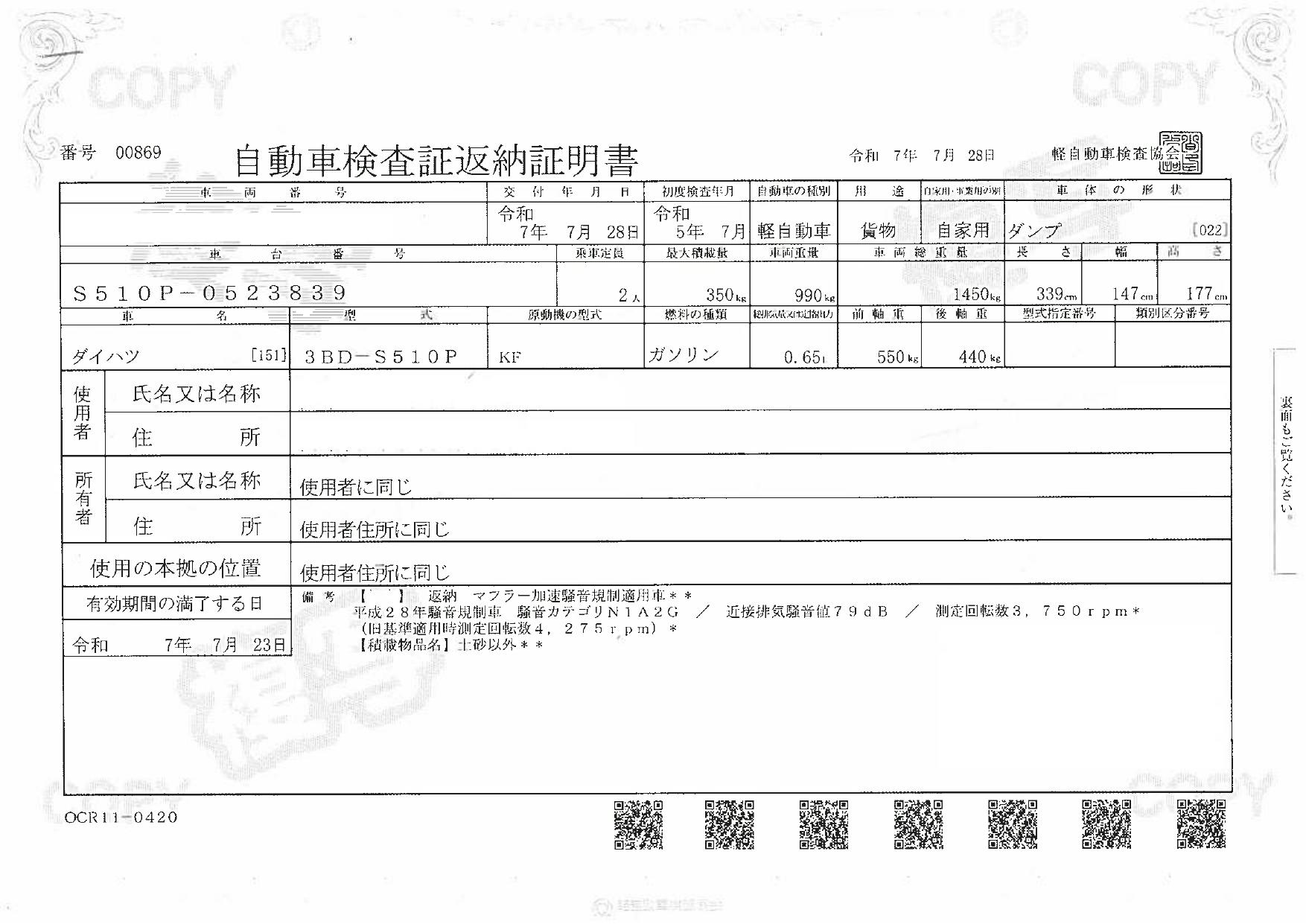 | メーカー/車名 | ダイハツ ハイゼットトラック |