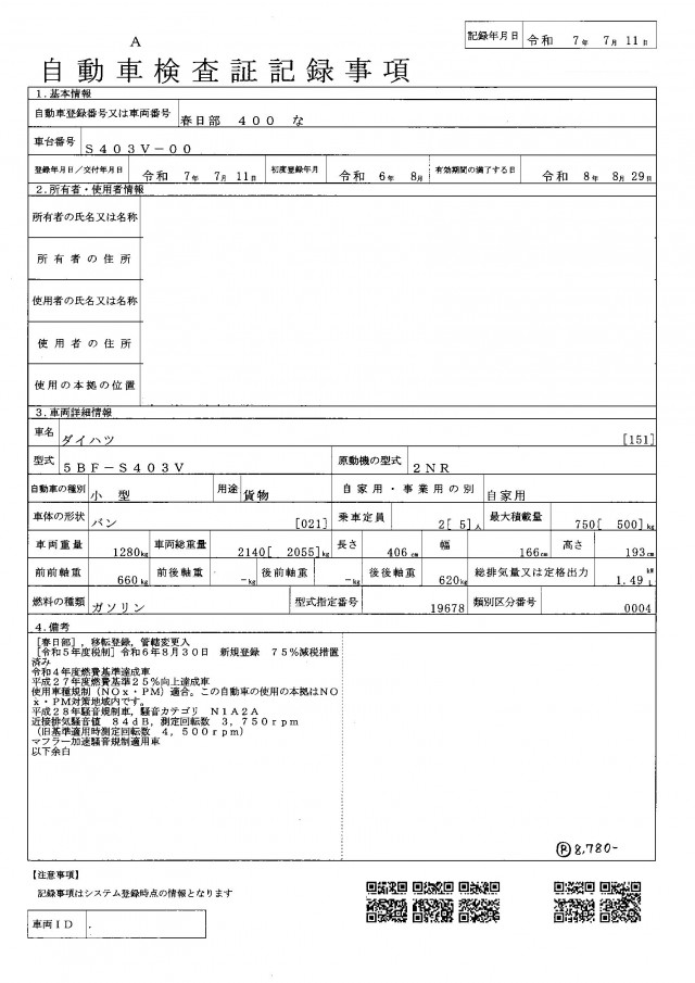 ※支払い価格は通常、2025年11月現在において、販売店住所の都道府県内登録(届出)で店頭納車の場合の価格となります。お客様の要望に基づくオプション等の費用、県外登録などをご希望の場合は別途店舗までお問合せください。