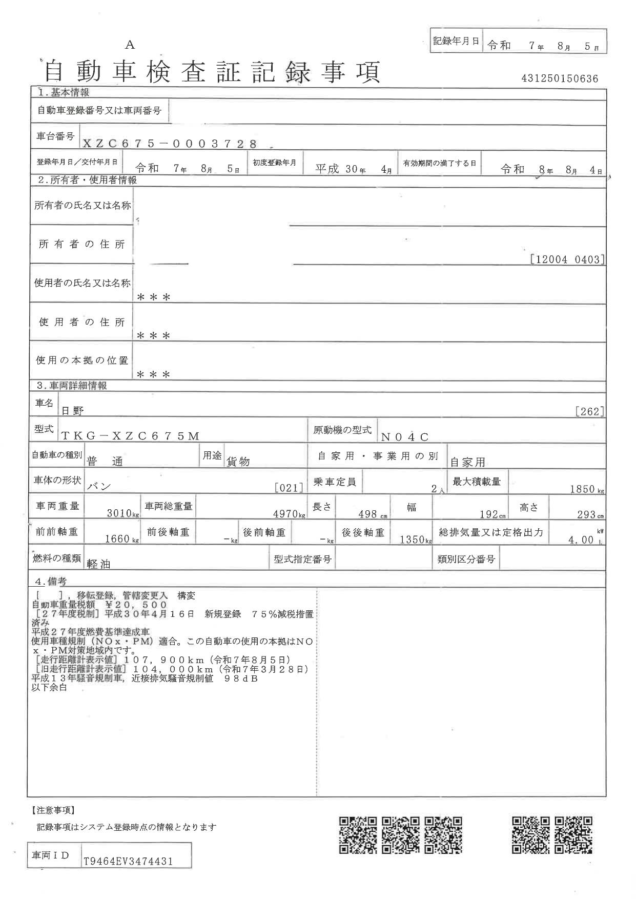 走行距離107,700(km)