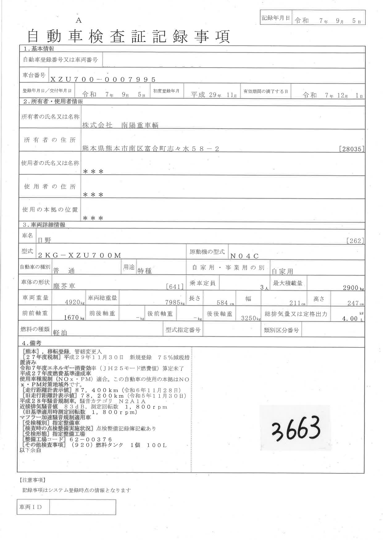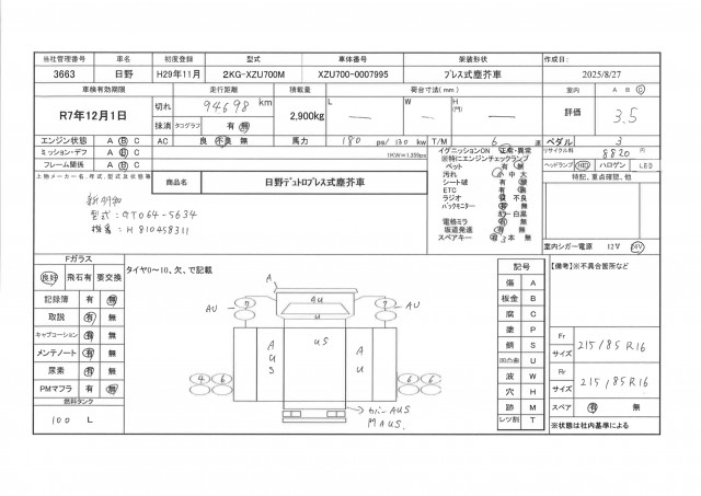 日野デュトロ 3tプレス式塵芥車 新明和製 容積6立米 連続スイッチ付 車検付 180馬力 走行10万km未満