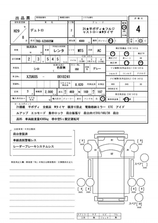 荷台塗装済 車線逸脱警報レス レーダーブレーキシステムレス