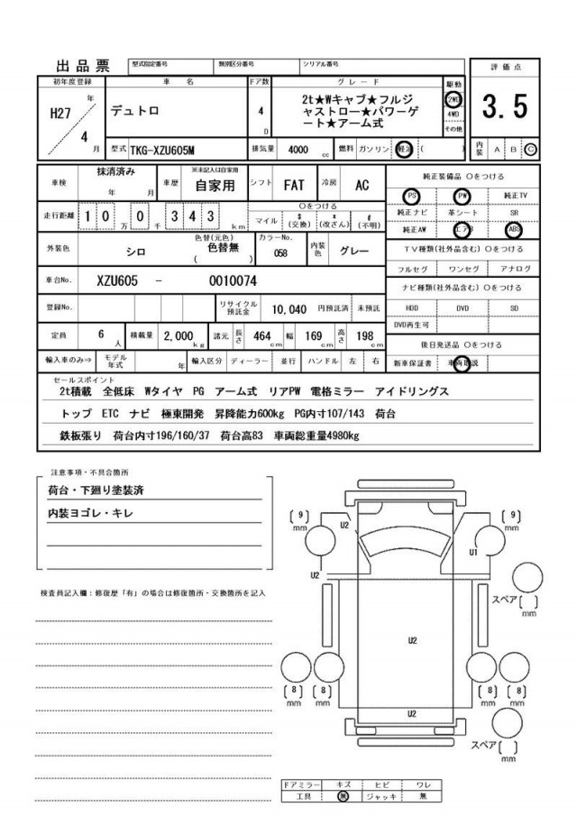 荷台・下廻り塗装済 内装ヨゴレ・キレ