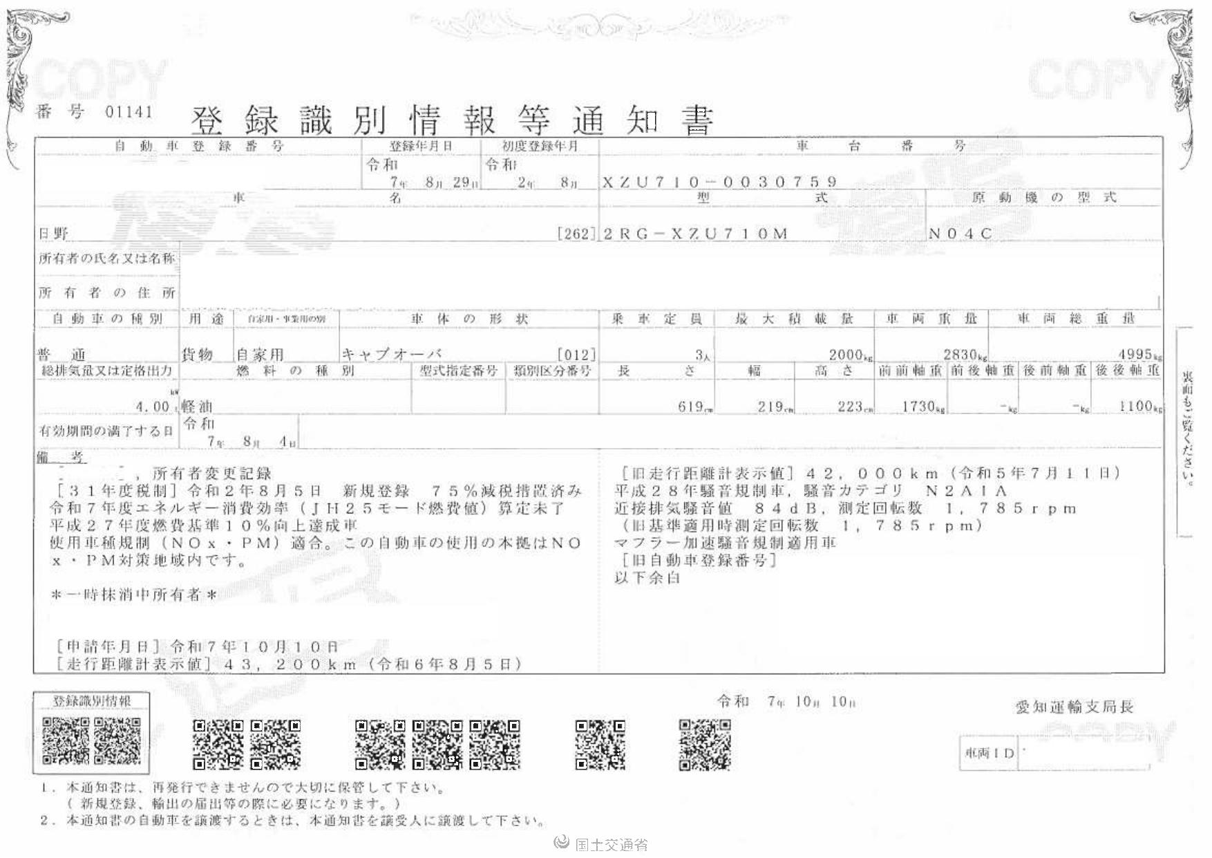 ★積載2t★平ボディ★ワイド★幅広荷台★ロング★全低床★VSC★TRC★ETC★LEDヘッド★左電格ミラー★B/Tオーディオ★保証書・取説★車両総重量4995Kg★N04Cターボ150馬力★荷台内寸約435×209×37荷台地上高約90cm★荷台床ロープフック3対★フロアマット・バイザー※PCS、LDA、Dインナーミラー、電動パーキングブレーキレス※F修復歴小、走行に支障ありません