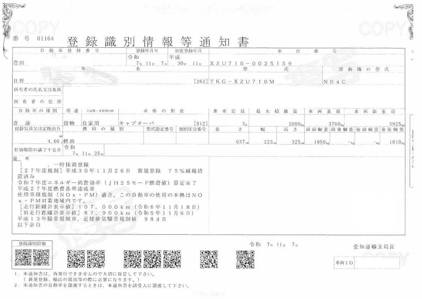 支払総額は愛知県内で登録の場合の金額です。ETCセットアップ費用は含まれていません。