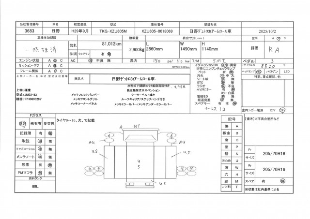状態表に記載