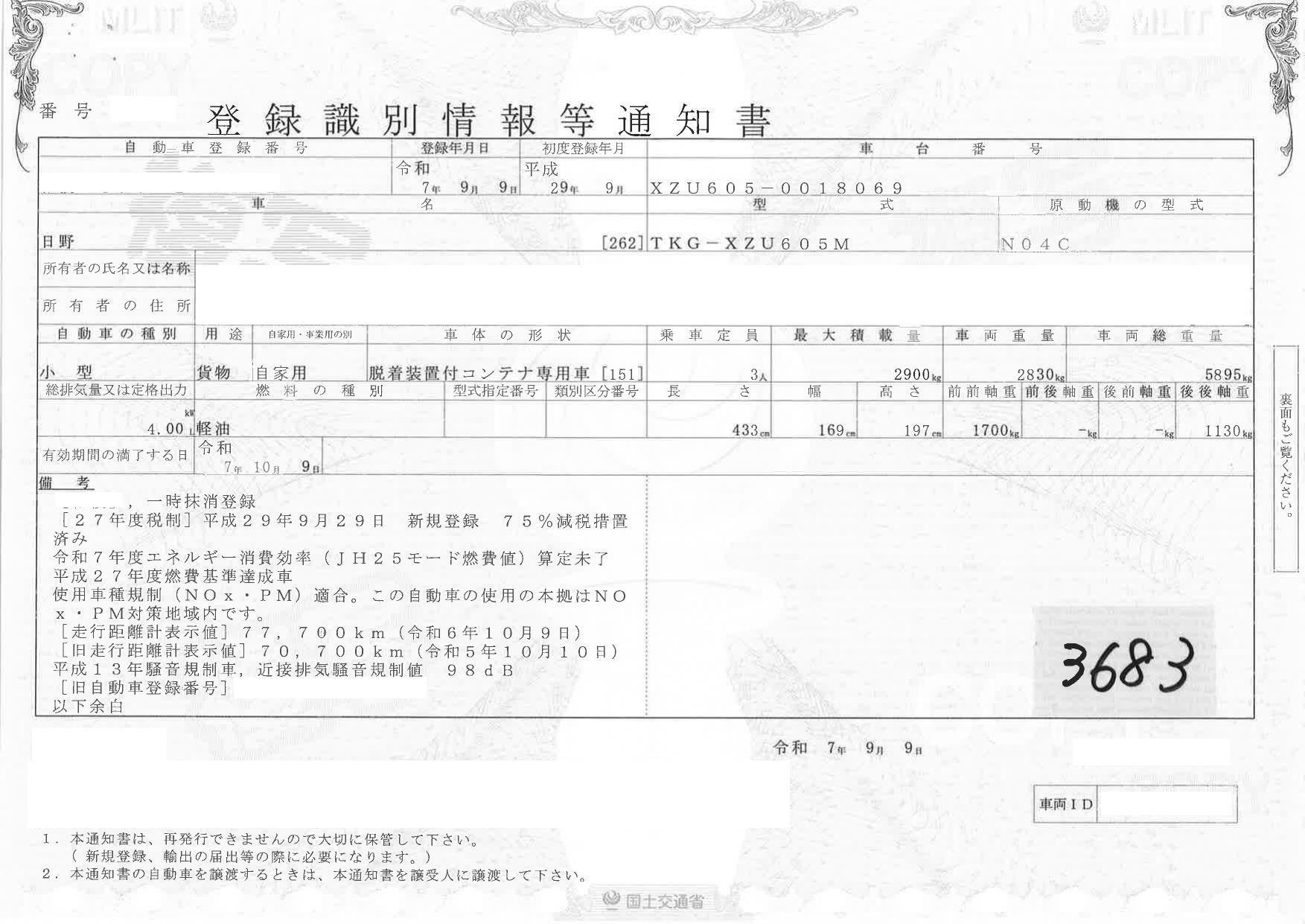車検 | 抹消 |