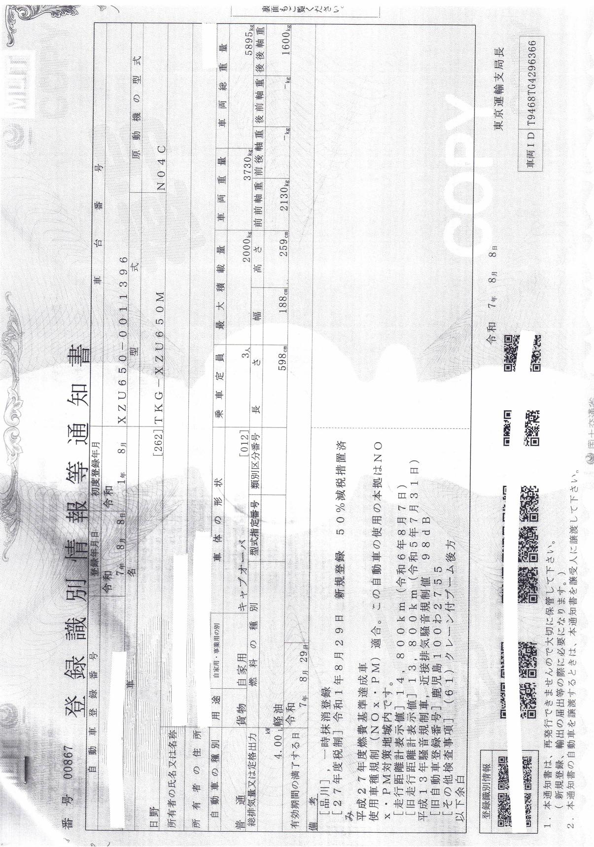 車検 | 抹消 |