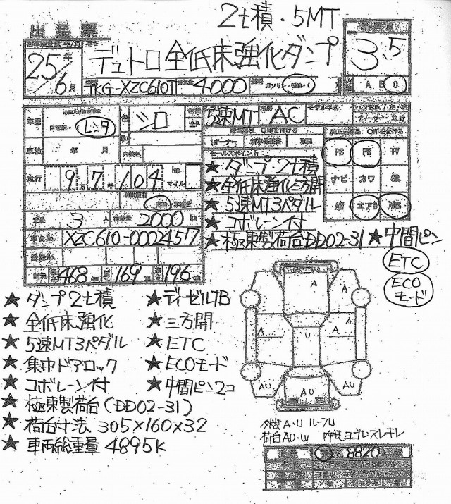 ★ダンプ ★全低床強化ダンプ三方開 ★2トン積 ★5速MT3ペダル ★極東製荷台DD02-31 ★中間ピン2個 ★集中ドアロック ★コボレーン付 ★ECOモード ★ETC ★バイザーマット ★荷台寸法305-160-32 ★車両総重量4895K