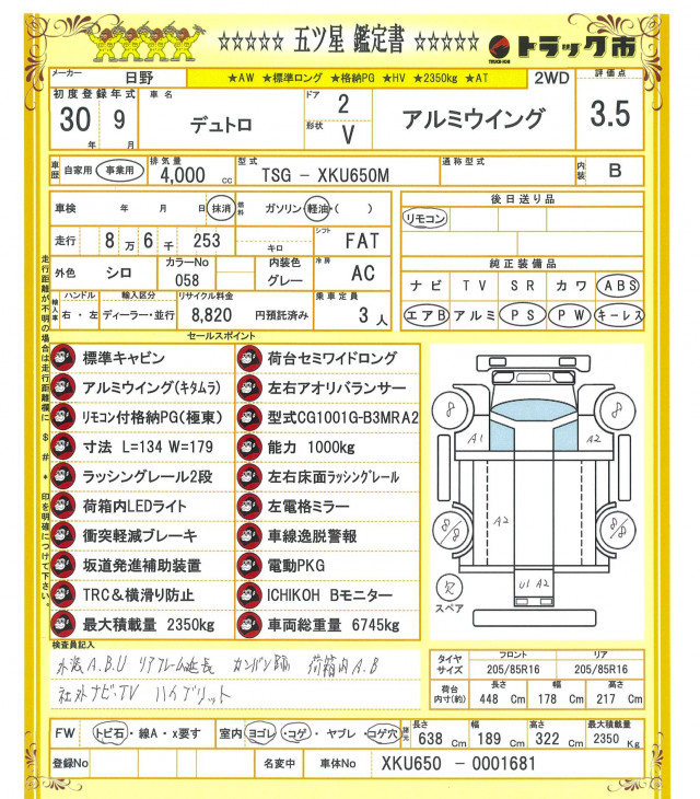 外装A.B.U リアフレーム延長 カンバン跡 荷箱内A.B 社外ナビ・TV ハイブリット