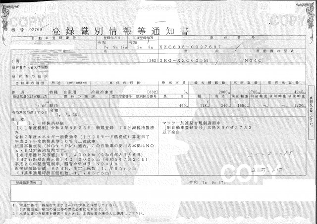 | 車検 | 抹消 |