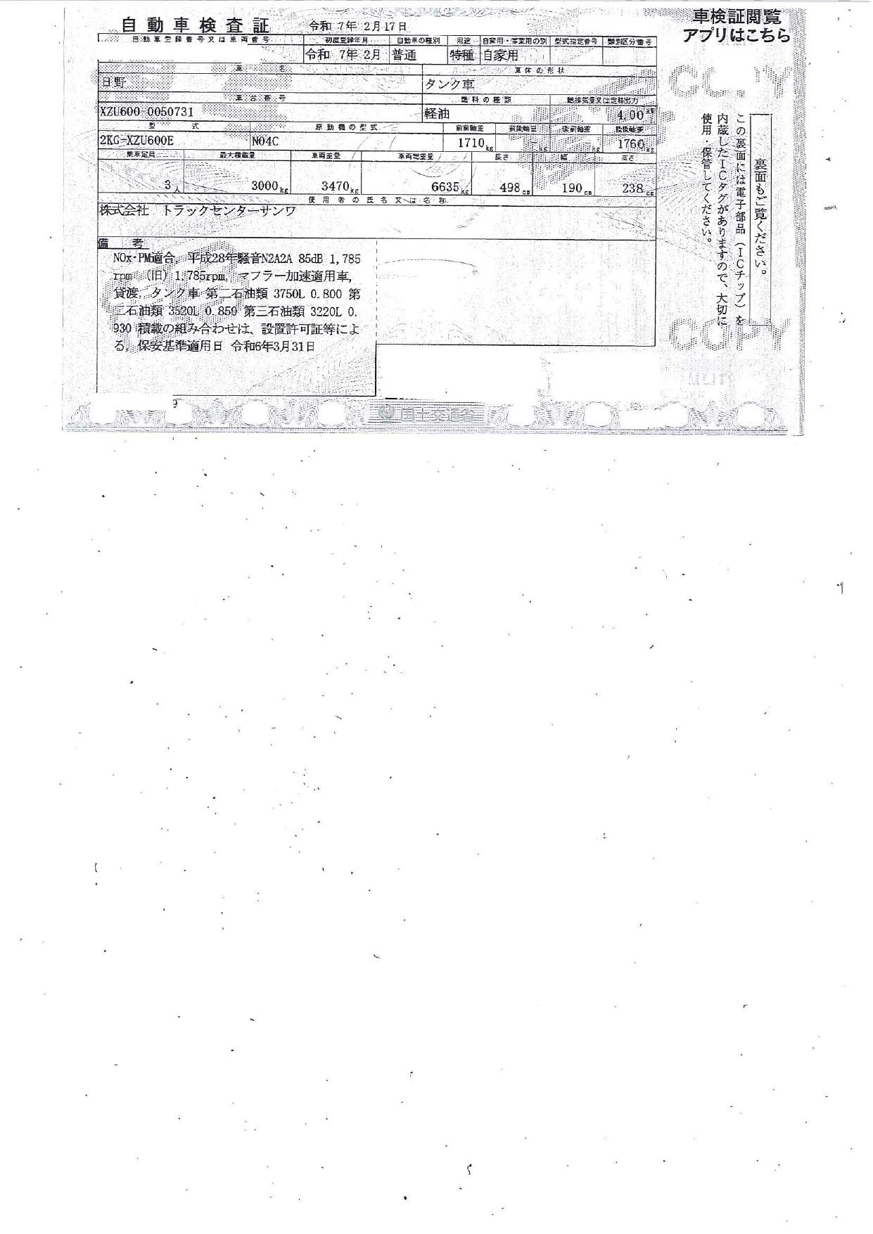 極東開発 型式/LS04-10 製造番号/23L010004N 3.75KL 2室 流量計/トキコ タンク検査証 70kpa 検査番号/15632 検査年月日/R6.10.9 積載物/灯油・軽油・重油 未使用車