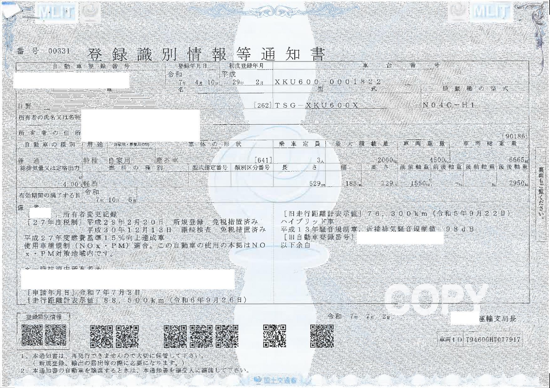 ※抹消車両は、登録時最大積載量が減トンされる可能性が御座います。