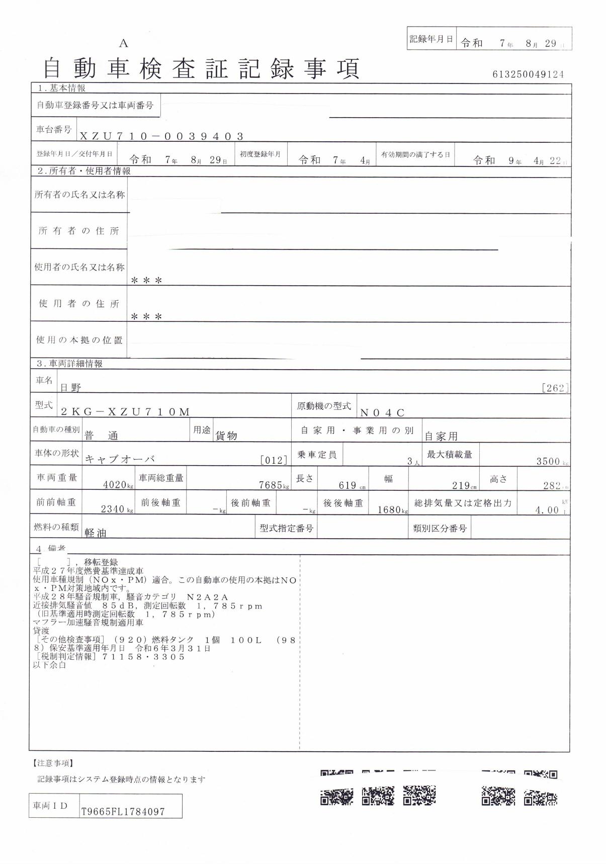 | サイズFR | 225/80R17.5 |