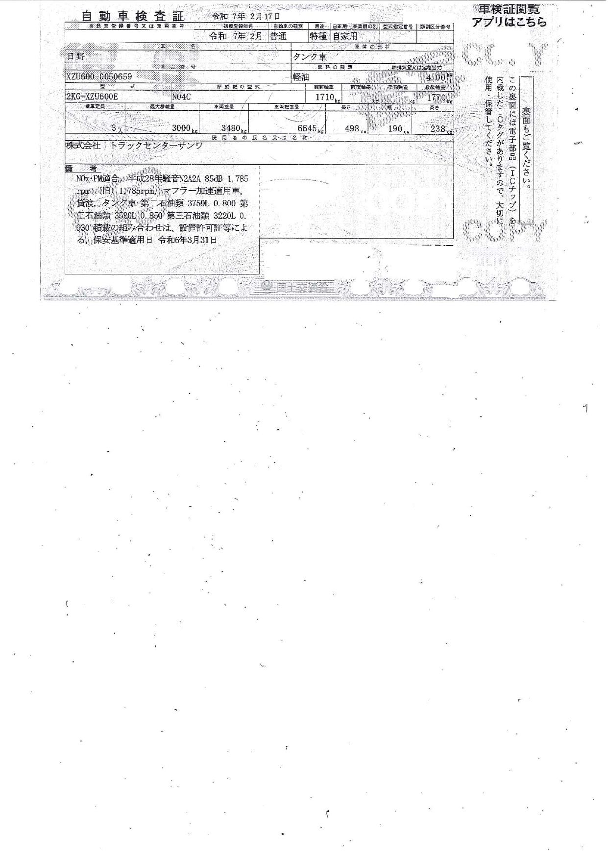 極東開発 型式/LS04-10 製造番号/23L010001N 3.75KL 2室 流量計/トキコ タンク検査証 70kpa 検査番号/15629 検査年月日/R6.10.7 積載物/灯油・軽油・重油