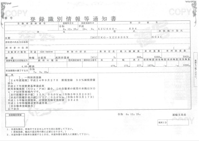 | 車検 | 抹消 |