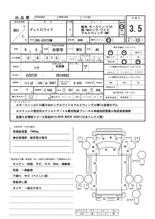 ☆キーストン☆3.5t積☆5mロング☆ワイド☆アルミウィング☆6MT☆後期モデル☆ステンレス製金具☆アシストゲート☆衝突軽減ブレーキ☆車線逸脱警報☆坂道発進補助装置☆左電格ミラー☆荷箱内寸L4978 W2078 H1921(日本トレクス製)