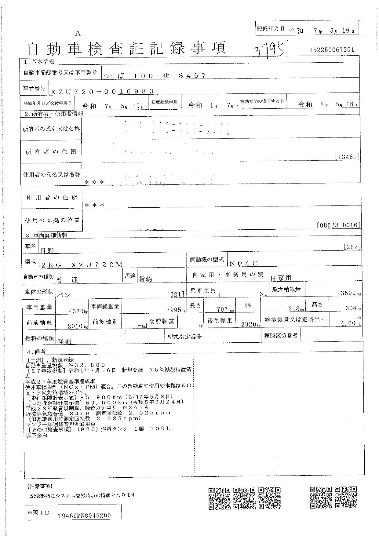 価格には保険料、税金(車両本体の消費税除)、リサイクル料金、リサイクル預託金相当額、登録、納車、陸送等に伴う費用等は含まれておりません。
