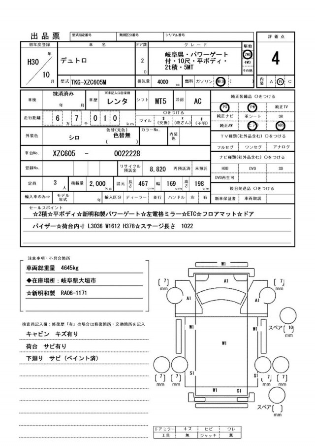 キャビン キズ有り・荷台 サビ有り・下廻り サビ(ペイント済)