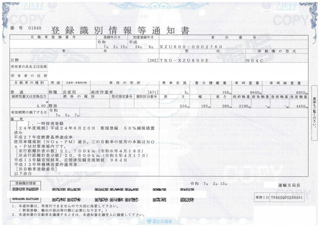 | 車検 | 抹消 |
