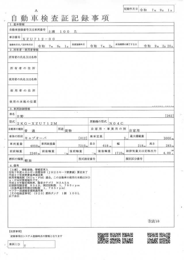 | 型式 | 2KG-XZU712M |