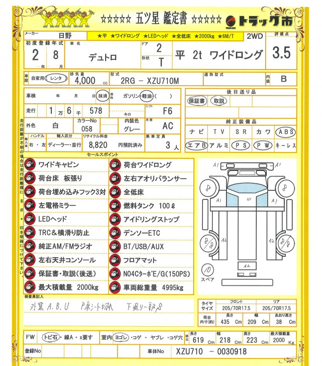 外装ABU P席シート切れ 下廻り一部S FW飛び石 室内汚れ