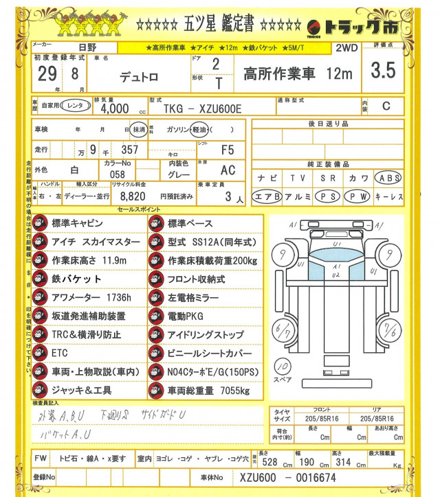 ☆高所作業車☆作業床高さ11.9m☆アイチ(SS12A)☆鉄バケット☆フロント収納式☆アワメーター1736h☆坂道発進補助装置☆TRC&横滑り防止装置☆電動パーキング☆左電格ミラー☆ETC☆ビニールシートカバー