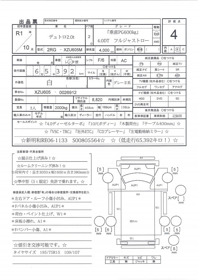 価格には保険料、税金(車両本体の消費税除)、リサイクル料金、リサイクル預託金相当額、登録、納車、陸送等に伴う費用等は含まれておりません。