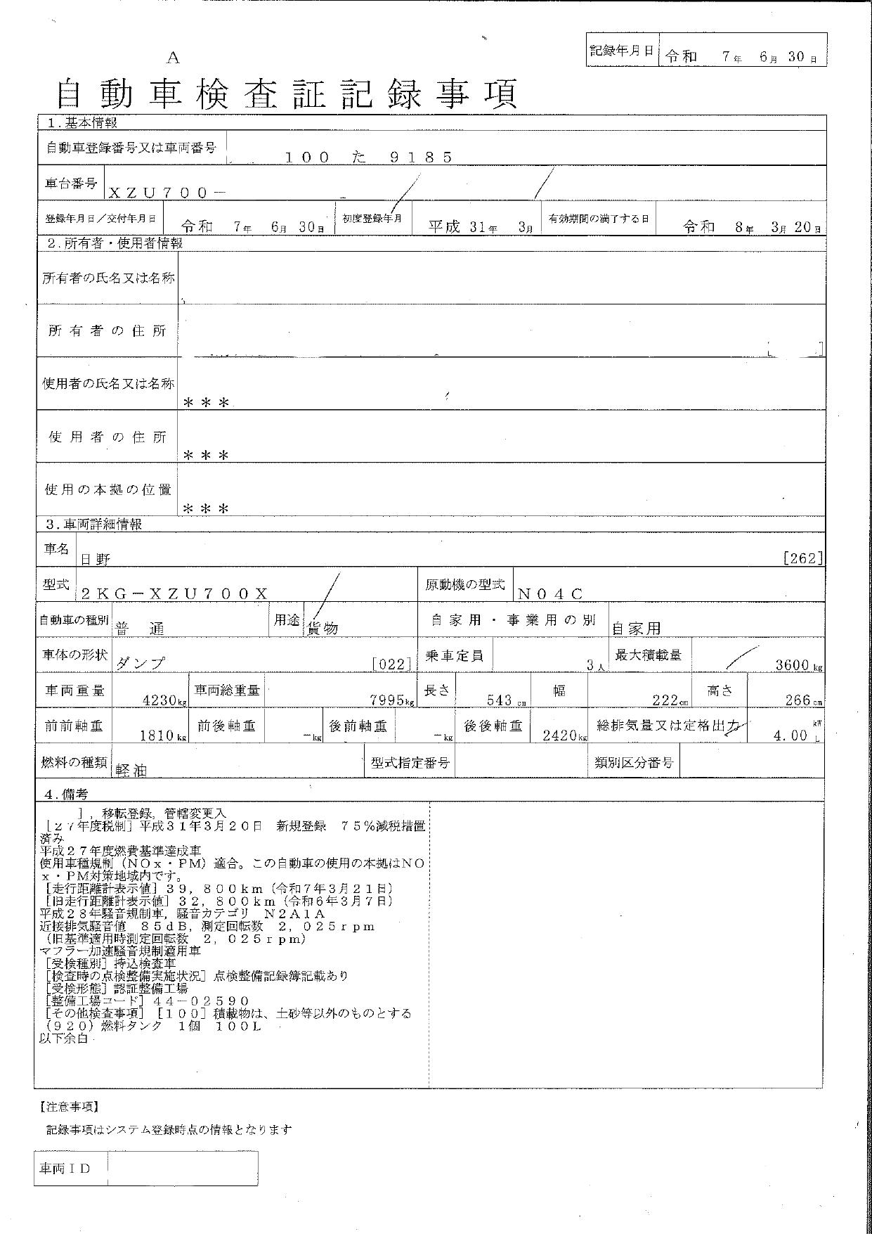 | NOX適合 | 適合 |