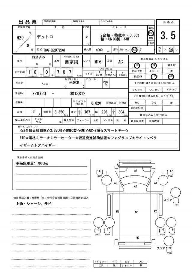 ☆2台積☆積載車☆3.35t積☆UNIC製☆6MT☆UC-21W☆スマートキー☆ETC☆電格ミラー☆ミラーヒーター☆坂道発進補助装置☆フォグランプ☆ライトレベライザー☆ドアバイザー