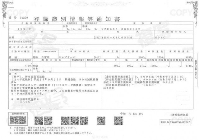荷台内寸436×180×38 車両外寸602×190×219 車両総重量5.0t未満 準中型免許証 1ナンバー エンジン型式N04C 4000CC 保証付 小型 トラック