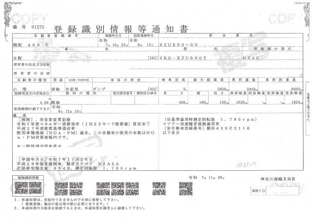 | 車検 | 抹消 |
