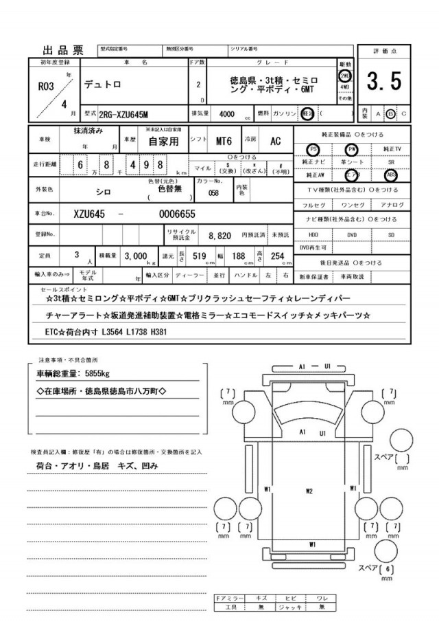 ☆3t積☆セミロング☆平ボディ☆6MT☆プリクラッシュセーフティ☆レーンディパーチャーアラート☆坂道発進補助装置☆電格ミラー☆エコモードスイッチ☆メッキパーツ☆ETC☆荷台内寸 L3564 L1738 H381