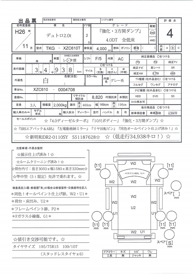 ☆H26年デュトロ2.0t全低床『強化・3方開ダンプ』10尺ボディー☆(低走行34,938キロ!)『リヤ回転ピン』『左電動格納ミラー』☆準中型(5t限定)免許で乗れます。☆(同色オールペン仕上げ!)☆遠方の方でも安心!ルームクリーニング済み!☆展示仕上げ済み!☆