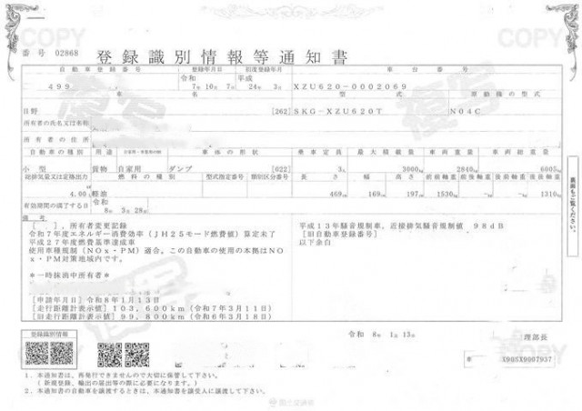 | 車検 | 抹消 |