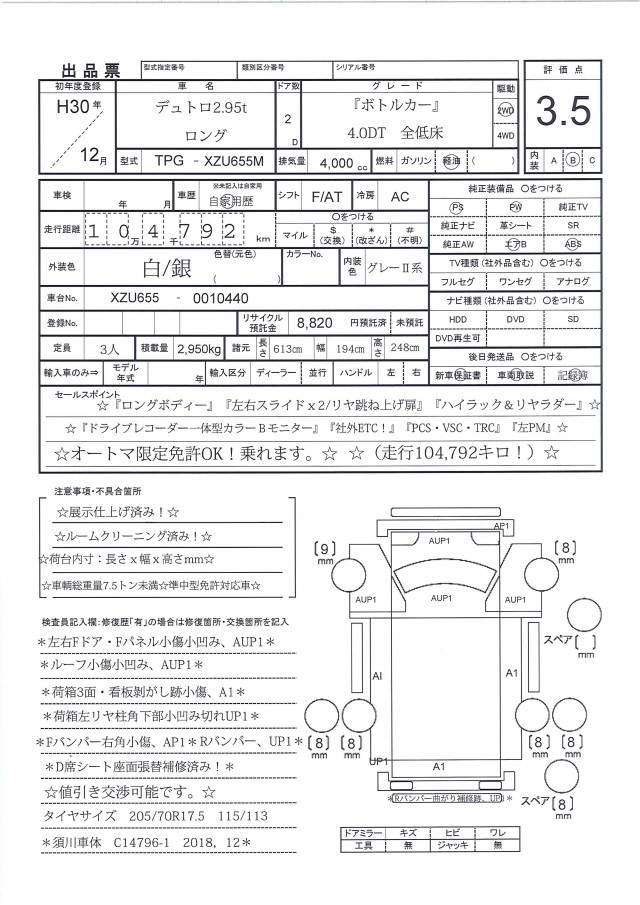 ☆H30年デュトロ2.95t『ロング』全低床『ボトルカー』左右スライドⅹ2/リヤ跳ね上げ扉☆(走行104,792キロ!)『ハイラック&リヤラダー』『ドライブレコーダー一体型カラーBモニター』『PCS・VSC・TRC』『社外ETC!』『左電動格納ミラー』☆車輌総重量7.5トン未満☆準中型免許対応車☆オートマ限定免許OK!乗れます。☆