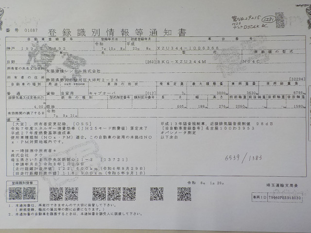 | 車検 | 抹消 |