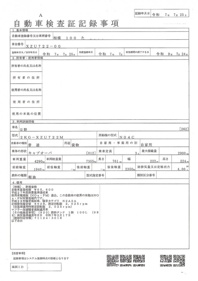 | 車両総重量 | 7,355kg |