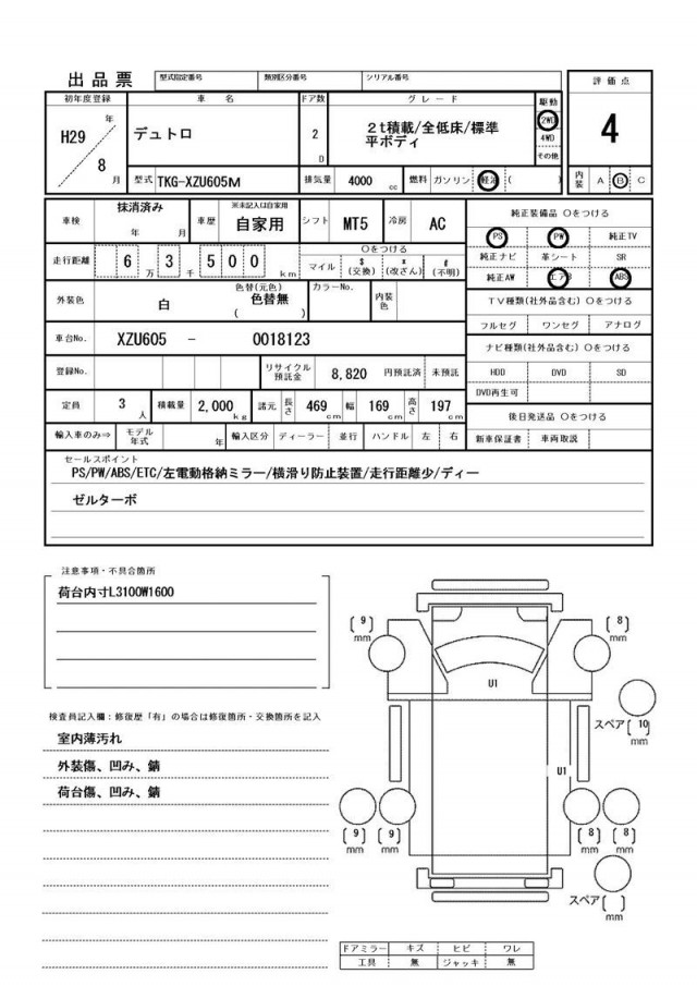☆室内薄汚れ☆外装傷、凹み、錆☆荷台傷、凹み、錆☆