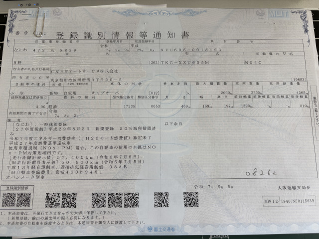 | 車検 | 抹消 |