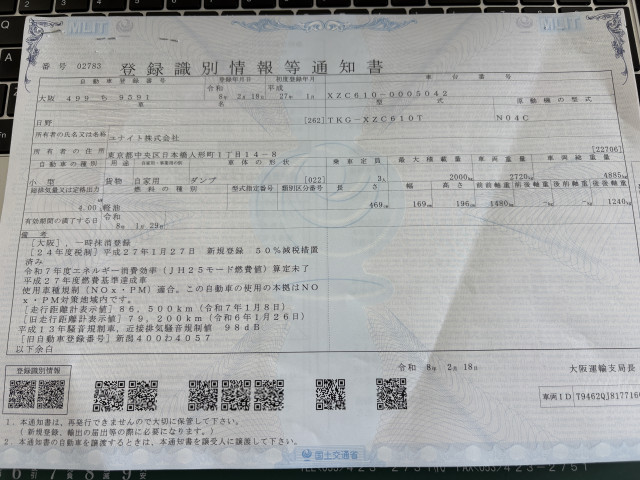 | 車検 | 抹消 |