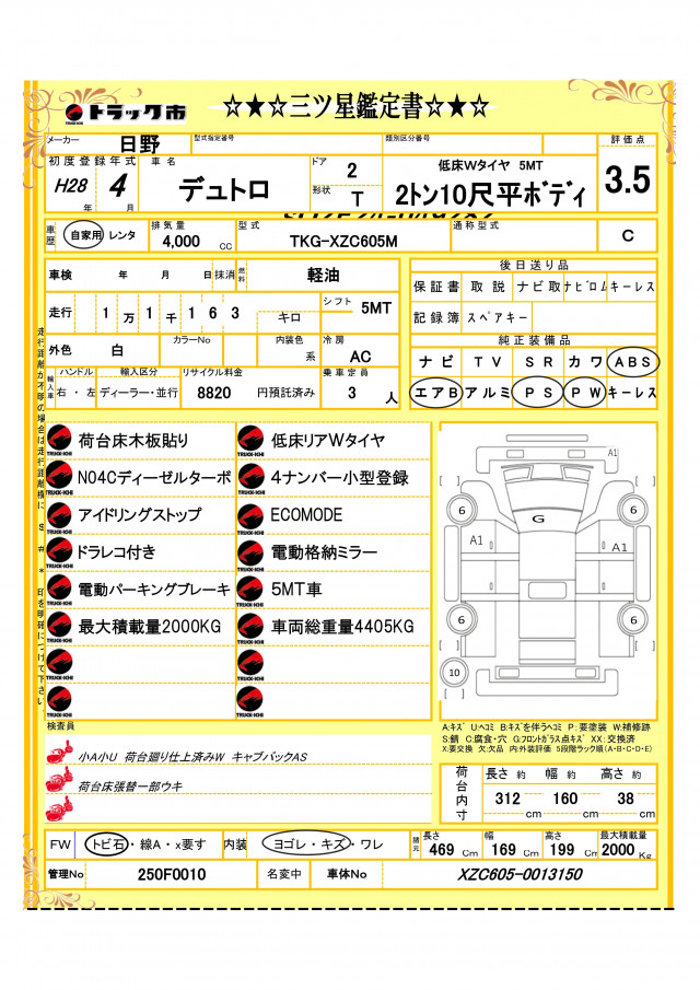 2トン10尺平ボディー 低床リアWタイヤ 荷台床木板貼り 電動格納ミラー アイドリングストップ 5MT